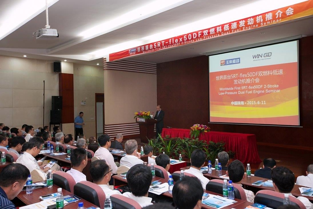 近日,世界首臺(tái)投入商業(yè)運(yùn)營(yíng)的5RT-flex50DF船用雙燃料低速發(fā)動(dòng)機(jī)在玉柴船動(dòng)成功交驗(yàn)。2015年6月11日,玉柴船動(dòng)舉行了5RT-flex50DF雙燃料低速機(jī)客戶日活動(dòng),船東、船廠、設(shè)計(jì)院、船級(jí)社、供應(yīng)商、同行造機(jī)廠、專利公司等各界代表共計(jì)300多人參加活動(dòng),受到了行業(yè)內(nèi)各方的廣泛關(guān)注。